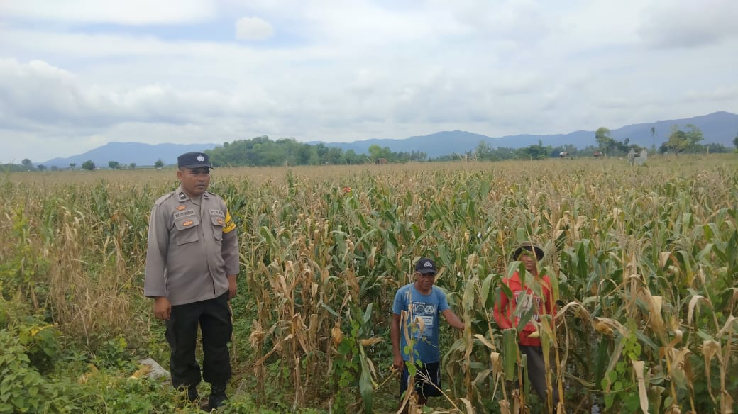 Bhabinkamtibmas Desa Mbawi Polsek Dompu, Aipda Muztahidin, melaksanakan pemantauan panen jagung milik Pak Zuharis di So Tunggu, Desa Mbawi, Kecamatan Dompu, pada Sabtu (15/11/2025) pukul 10.30 Wita.