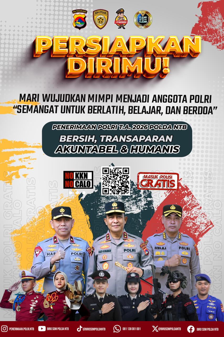 Polda Nusa Tenggara Barat (NTB) terus mematangkan berbagai persiapan menjelang pelaksanaan Rekrutmen Terpadu Polri Tahun Anggaran 2026 yang meliputi penerimaan Akademi Kepolisian (Akpol), SIPSS, Bintara, dan Tamtama Polri. Rekrutmen tersebut direncanakan akan mulai dilaksanakan pada Februari 2026 dan menjadi salah satu agenda strategis dalam upaya mencetak sumber daya manusia Polri yang unggul, profesional, dan berintegritas.