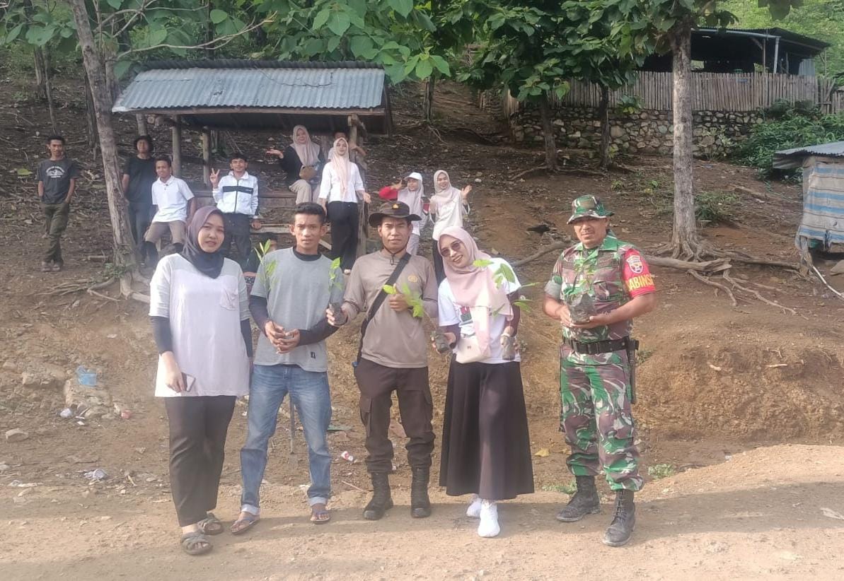 Bhabinkamtibmas Polsek Woha Polres Bima Polda NTB Bripka Imam Firdaus menghadiri penghijauan atau penanaman pohon di Kawasan Bukit Doro Nepi Desa Samili.