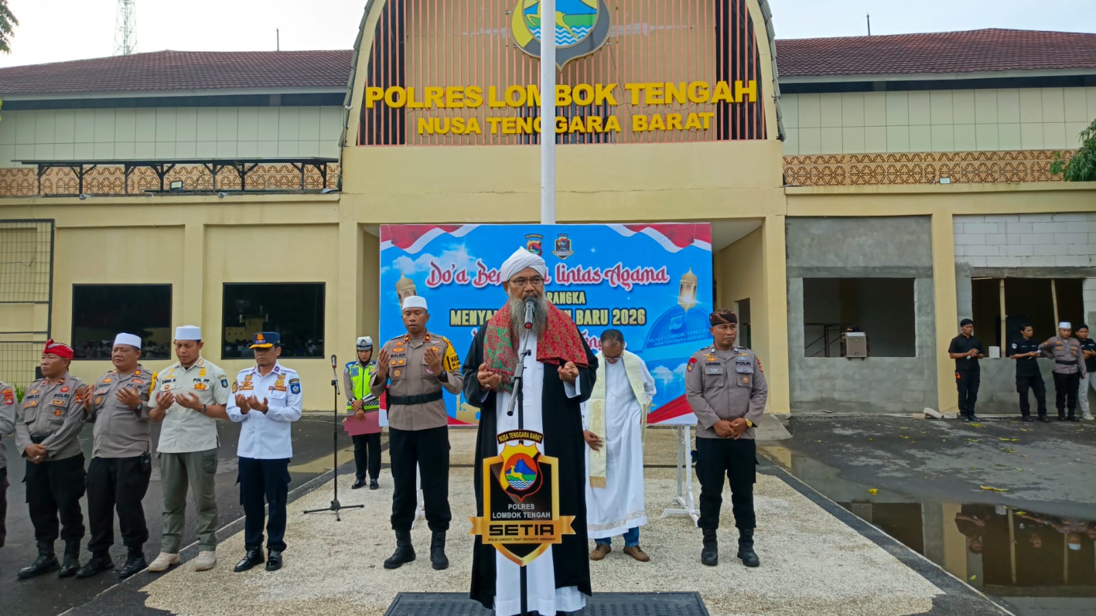 Kegiatan doa bersama ini dihadiri oleh Wakapolres, Pejabat Utama Polres Lombok Tengah, personel Polres dan Polsek jajaran, tokoh agama dari berbagai agama, serta instansi terkait.