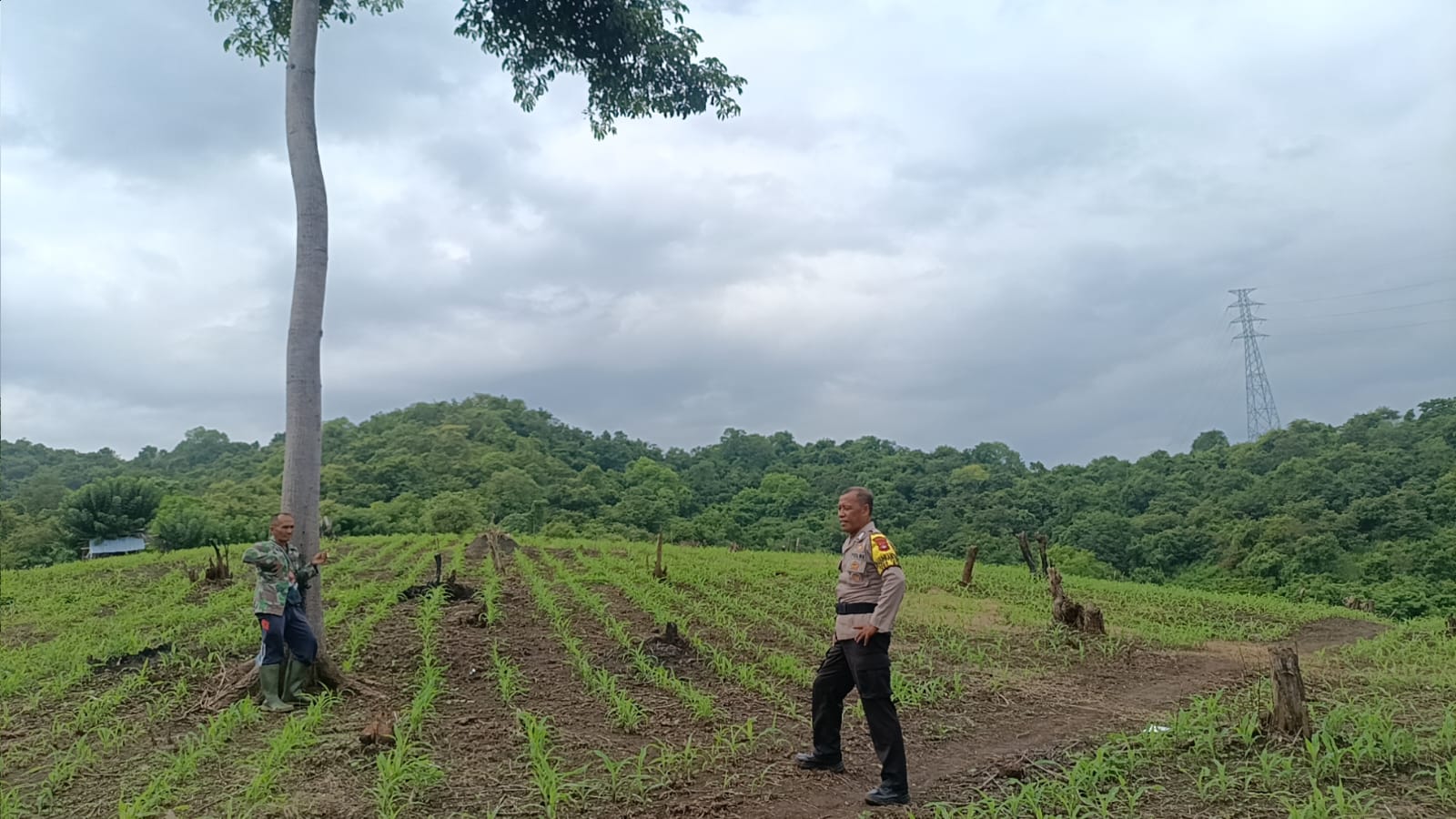 Kegiatan monitoring ini difokuskan pada lahan milik Bapak Mepak, seorang warga setempat yang berhasil memanfaatkan lahan kosong seluas 15.000 meter persegi (1,5 Hektar) untuk ditanami komoditas jagung. Saat kunjungan berlangsung, tanaman jagung di lokasi tersebut terpantau telah memasuki usia tanam kurang lebih 15 hari. Bripka Heriyanto berdialog langsung dengan pemilik lahan untuk memastikan tidak ada kendala teknis maupun gangguan keamanan yang menghambat proses budidaya di area perkebunan tersebut.