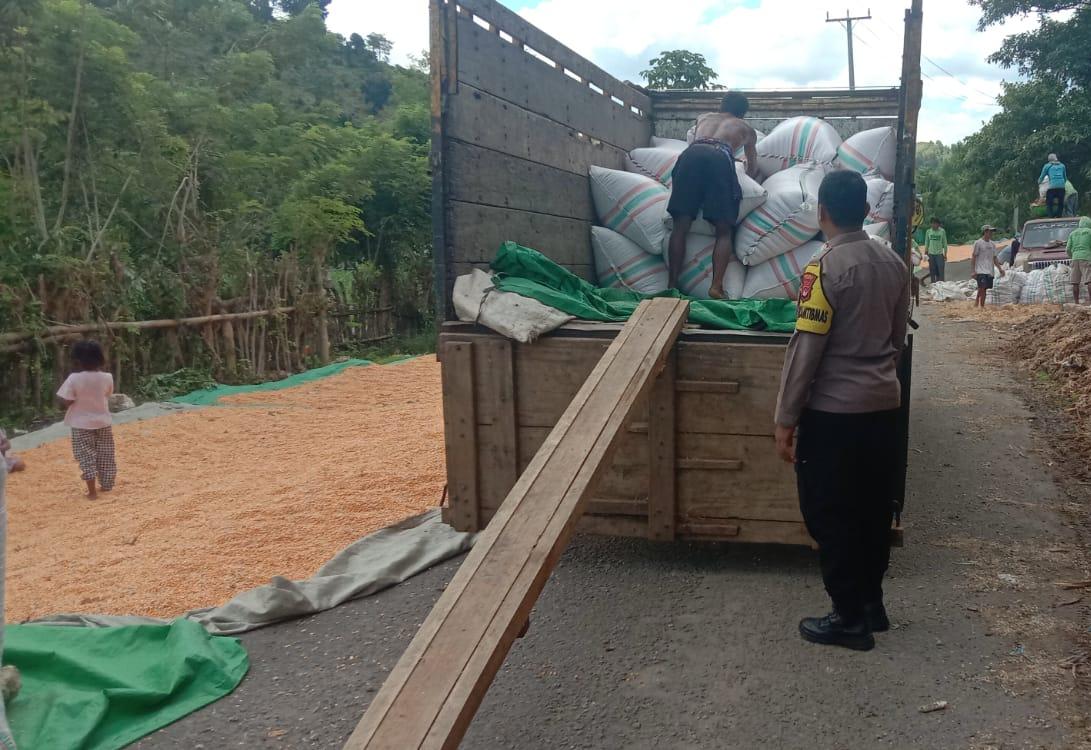 Dalam rangka mendukung Program Ketahanan Pangan Nasional menuju Indonesia Emas, Bhabinkamtibmas Desa Bara Polsek Woja, BRIPKA Supriadi, melaksanakan kegiatan pemantauan penjemuran sekaligus pengangkutan hasil panen jagung milik warga binaan pada Sabtu (18/04/2026) pukul 11.30 WITA di Dusun Fo’o Mpongi, Desa Bara, Kecamatan Woja, Kabupaten Dompu.