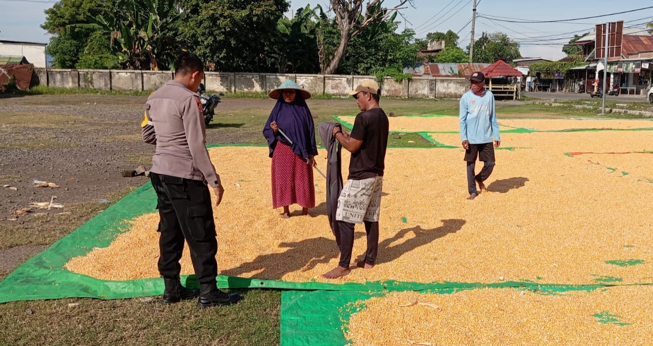 Dalam rangka mendukung program ketahanan pangan nasional, Bhabinkamtibmas Desa Konte, Bripka Asabet, melaksanakan kegiatan pemantauan dan pendampingan kepada warga binaan yang sedang menjemur hasil panen pada Minggu (15/3/2026) sekitar pukul 11.00 WITA.