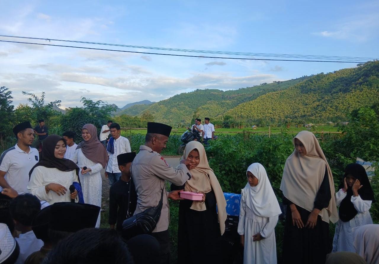 Bhabinkamtibmas Polsubsektor Palibelo jajaran Polres Bima Polda NTB Aipda Idham mengawal pawai Ta,Aruf menyambut Bulan Suci Ramadhan 1447 H Tahun 2026 M.