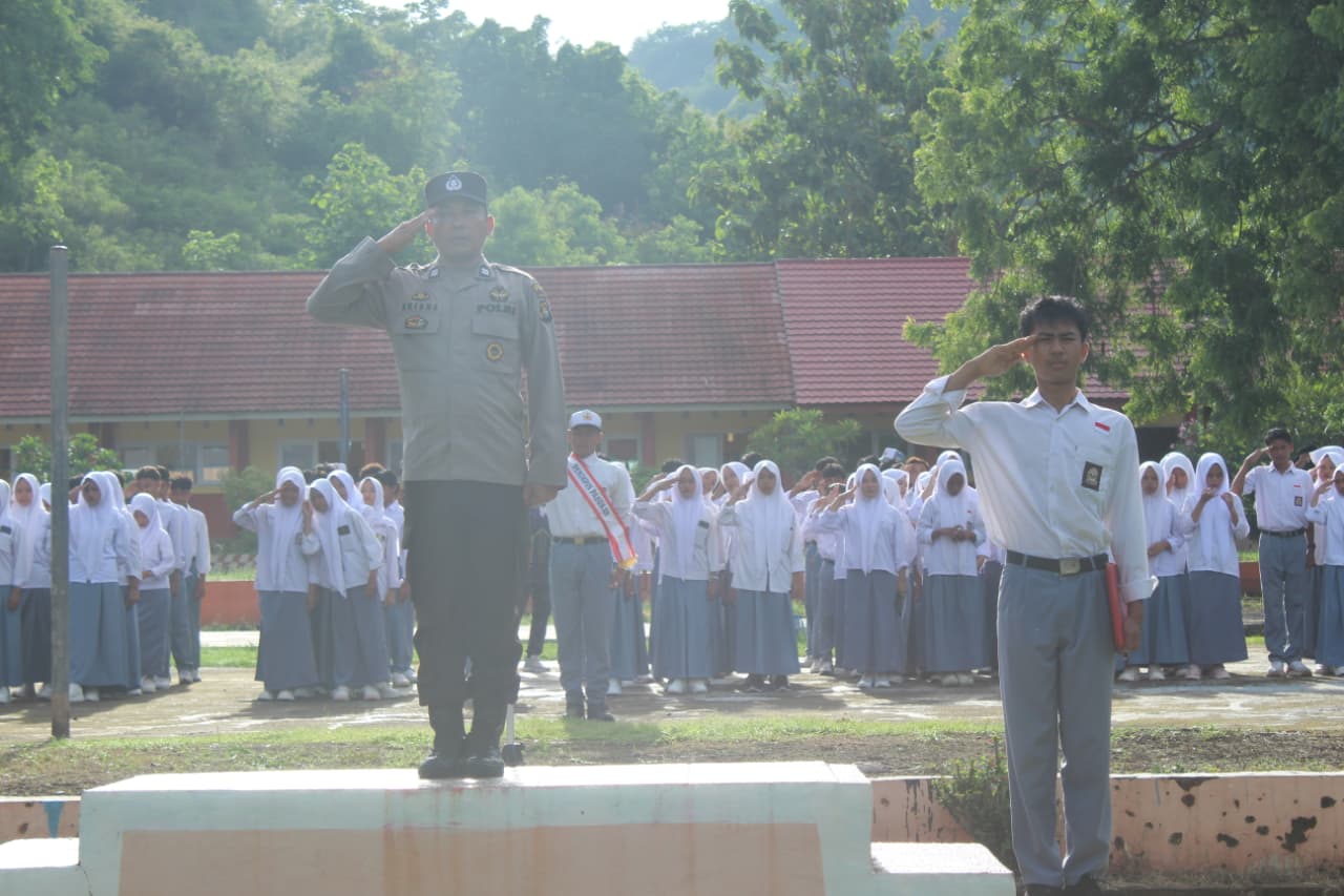 “Dalam amanatnya sebagai pembina upacara, Ps. Kanit Binmas Polsek Lambu menyampaikan sejumlah imbauan kepada para siswa agar senantiasa menaati peraturan yang berlaku di sekolah maupun di luar sekolah,” jelas Kasi Humas.