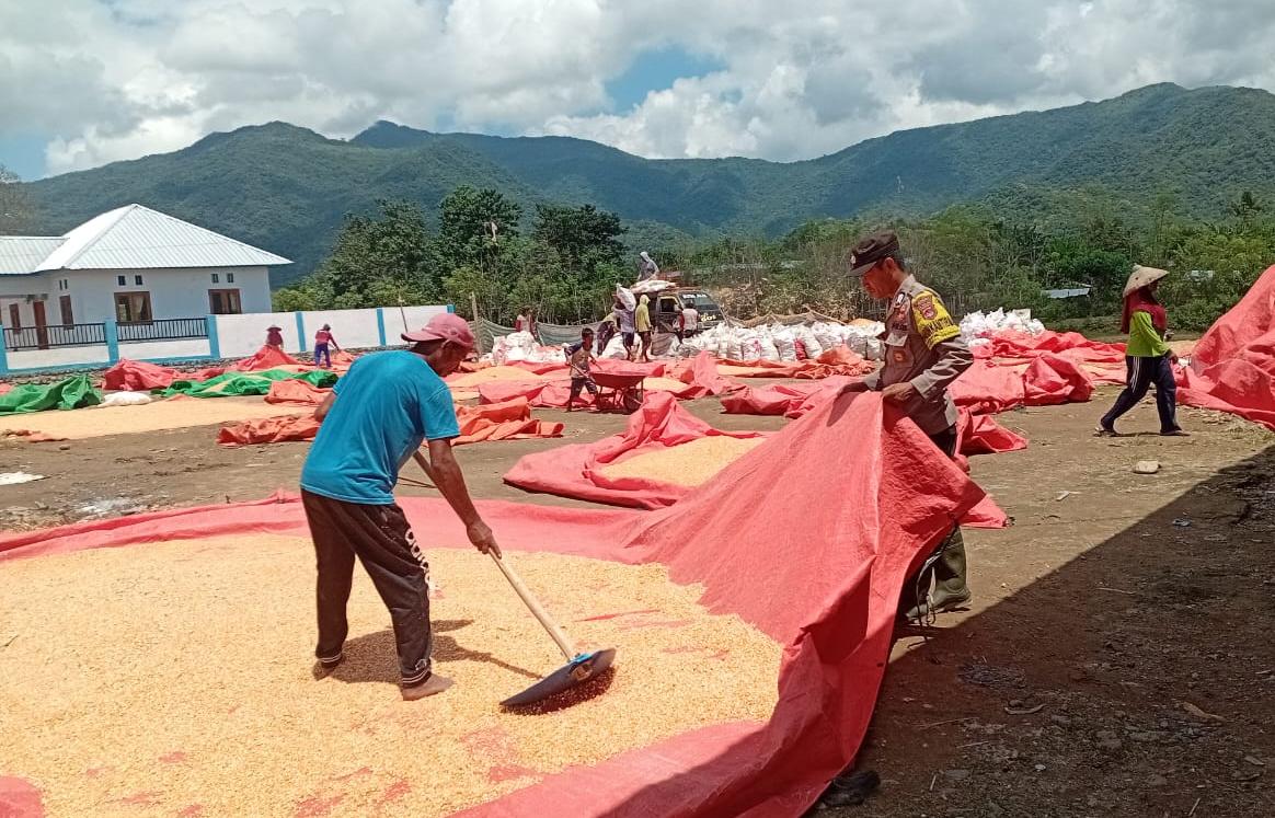 Hasil pengecekan yang dilaksanakan oleh Bripka Azwar Anas selaku Bhabinkamtibmas Desa Keli saat para petani jagung masih melakukan penjemuran.