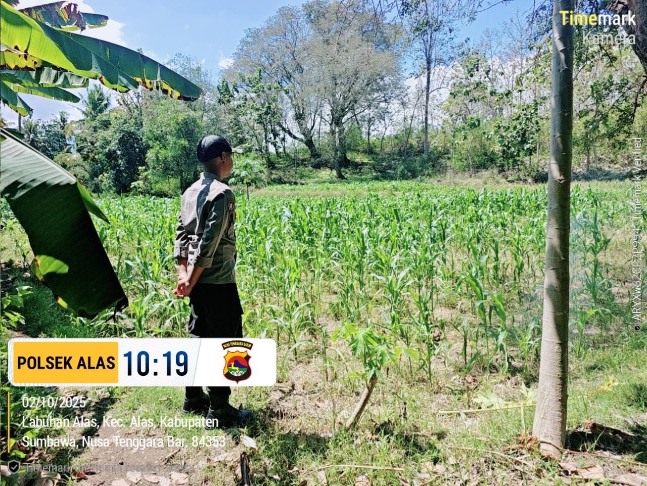 Dukung Ketahanan Pangan Nasional, Bhabinkamtibmas Labuhan Alas Cek Lahan Jagung Warga