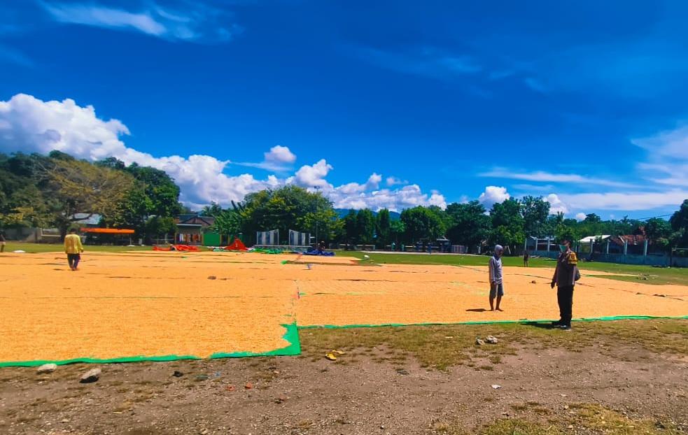 Seperti halnya yang dilaksanakan oleh Bripka M.Dimyati Bhabinkamtibmas Polsubsektor Palibelo Polres Bima Kabupaten Polda NTB menyabangi para petani yang menjemur jagung di Desa Binaannya.