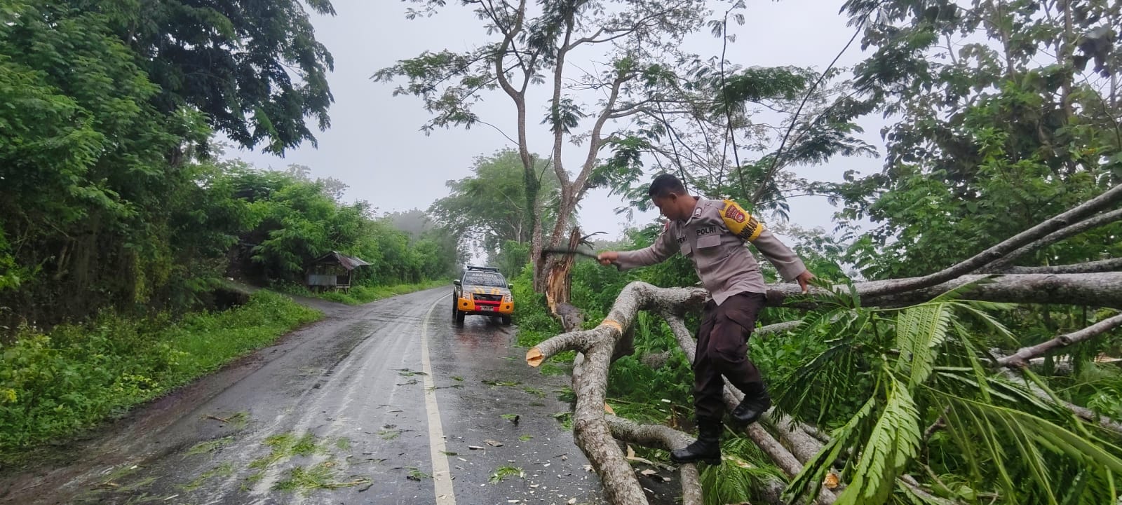 Kota Bima, NTB (11 November 2025) – Polsek Asakota bergerak cepat menanggapi laporan warga terkait adanya pohon tumbang yang menutup akses jalan umum di jalur lintas Kelurahan Jatibaru–Ambalawi, tepatnya di kawasan Ncai Kapenta, pada Senin (10/11/2025) sekitar pukul 14.10 WITA.