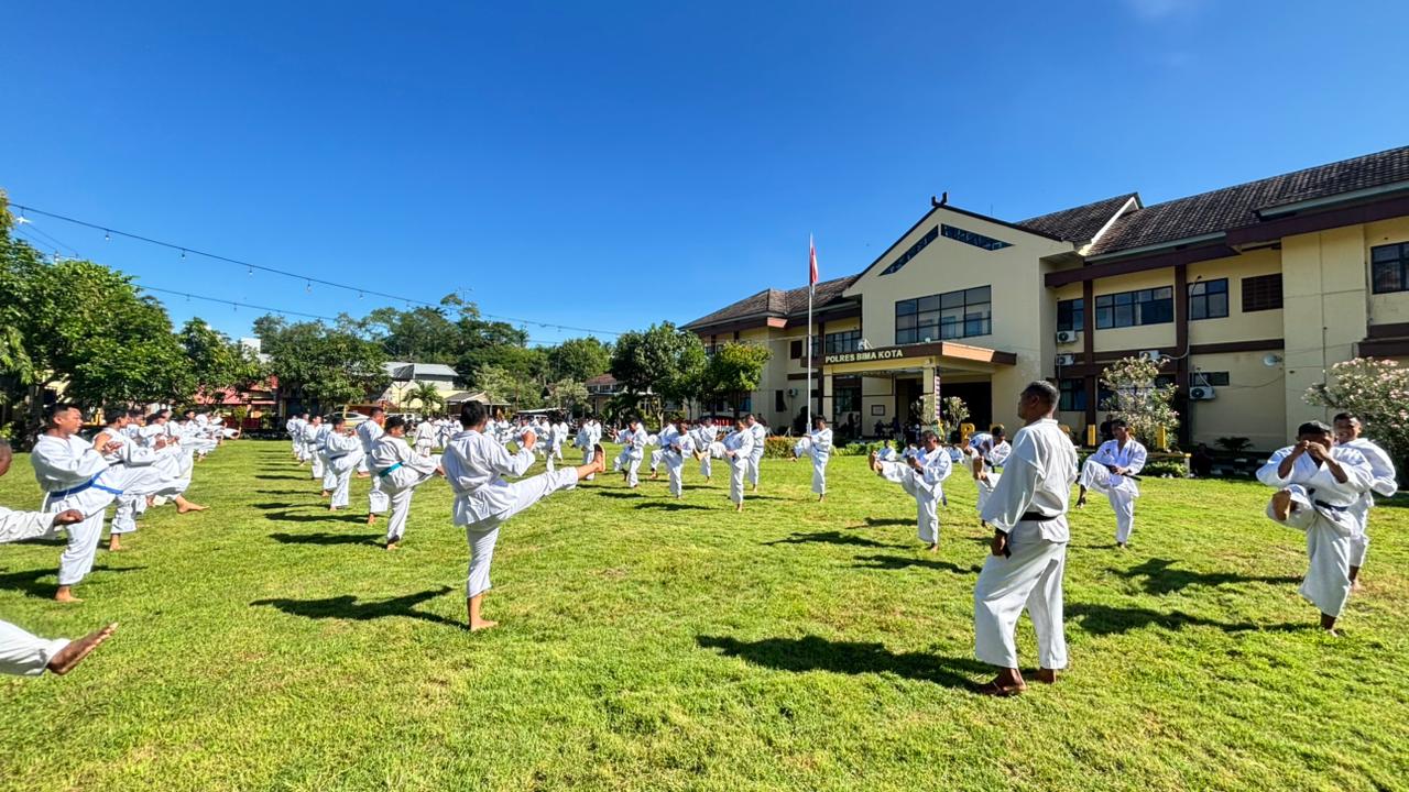 Kota Bima, 10 April 2026 (11 April 2026) – Dalam rangka persiapan Usulan Kenaikan Pangkat (UKP) periode 1 Juli 2026, personel Polres Bima Kota bersama Batalyon C Pelopor Satbrimobda Polda NTB mengikuti Ujian Bela Diri Polri yang dilaksanakan pada Jumat (10/4/2026) pukul 08.30 WITA, bertempat di Lapangan Presisi Polres Bima Kota.