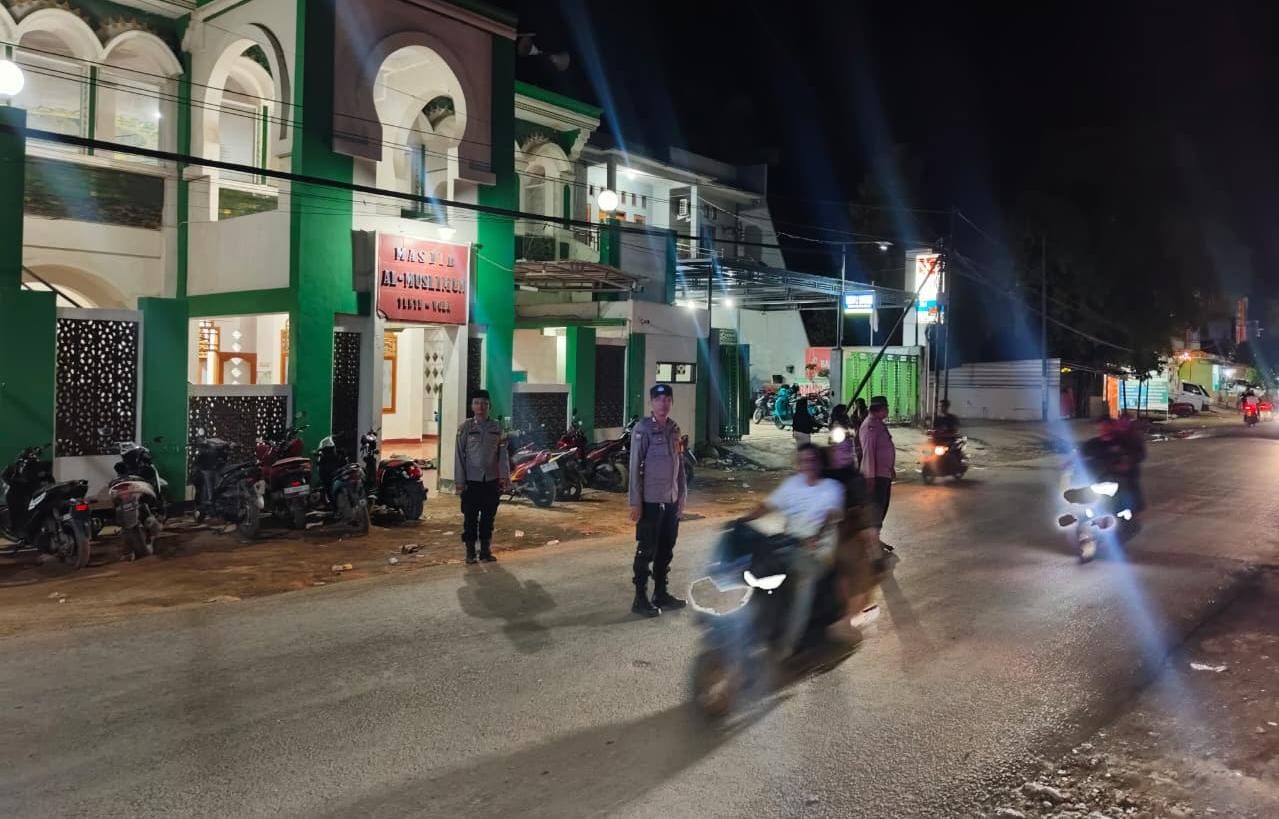 Piket Regu III SPKT Polsek Woha Polres Bima Polda NTB menggelar Patroli pengamanan ibadah Sholat Tarawih di malam pertama bulan suci Ramadhan 1447 Hijriah tahun 2026 Masehi.