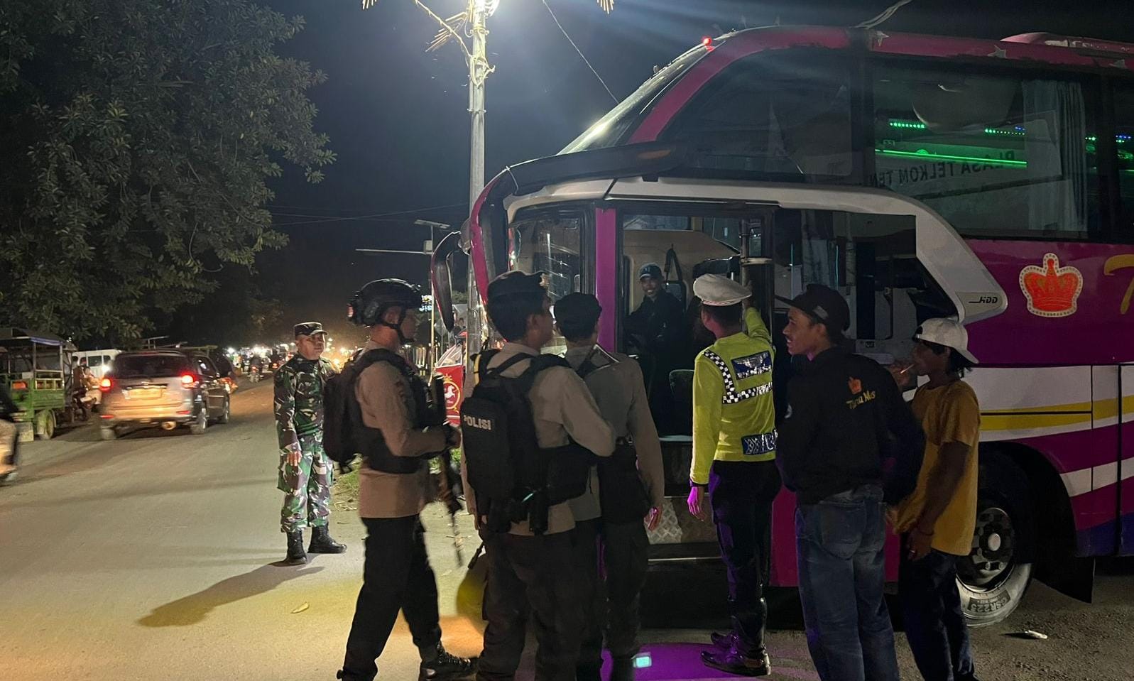 Selain melakukan pengaturan Arus lalulintas Personel juga menggelar pengecekan terhadap penumpang bus antar propinsi di terminal Tente.