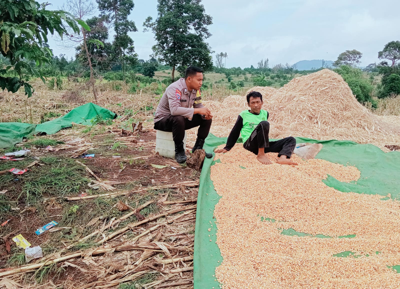 Kapolsek Pekat, IPTU Jubaidin, memberikan apresiasi atas peran aktif Bhabinkamtibmas dalam mendampingi masyarakat di bidang pertanian.