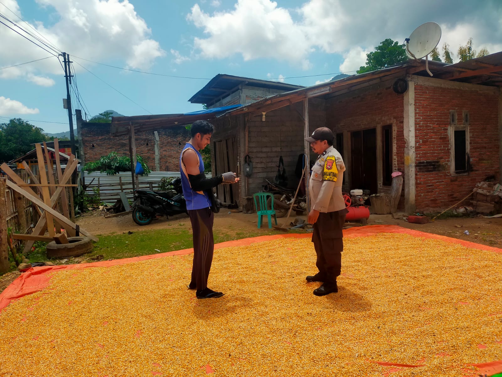 Dalam rangka mendukung Program Ketahanan Pangan Nasional menuju Indonesia Emas, Bhabinkamtibmas Desa Jala Polsek Hu’u, AIPDA JAINAL ARIFIN, melaksanakan kegiatan pemantauan penjemuran jagung milik warga binaan pada Rabu (18/04/2026) pukul 12.30 WITA di Desa Jala, Kecamatan Hu’u, Kabupaten Dompu.