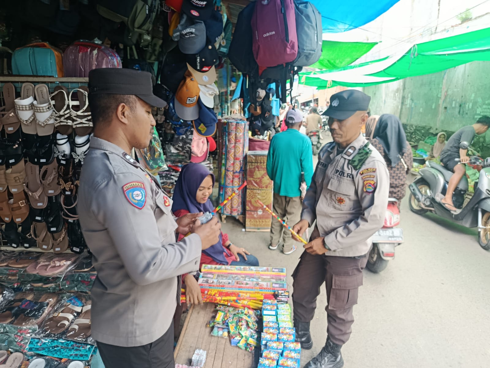 Dalam kegiatan tersebut, petugas memberikan edukasi langsung kepada pedagang sekaligus mengamankan sejumlah petasan yang dinilai berpotensi membahayakan keselamatan masyarakat.