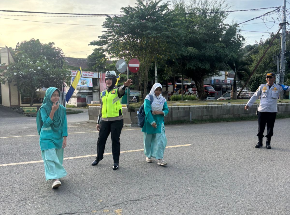 Dalam pelaksanaannya, personel Unit Lantas Polsek Rasanae Barat melakukan pengaturan arus lalu lintas guna mencegah terjadinya kemacetan serta membantu para pelajar dan masyarakat menyeberang jalan dengan aman.