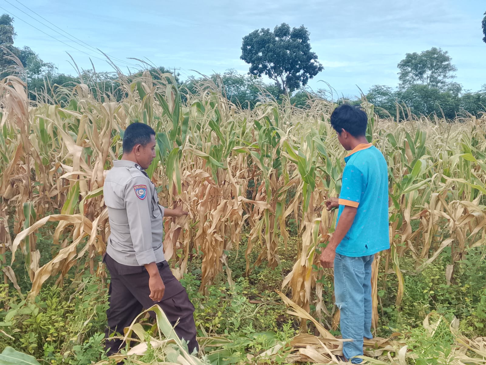 Dalam rangka mendukung Program Ketahanan Pangan Nasional menuju Indonesia Emas 2045, Bhabinkamtibmas (BKTM) Desa Doropeti Polsek Pekat, AIPTU Firdaus, melaksanakan kegiatan pemantauan lahan jagung milik warga binaannya di Dusun Dam Kasipahu, Desa Doropeti, Kecamatan Pekat, Kabupaten Dompu, Selasa (24/3/2026) pukul 10.15 Wita hingga selesai.