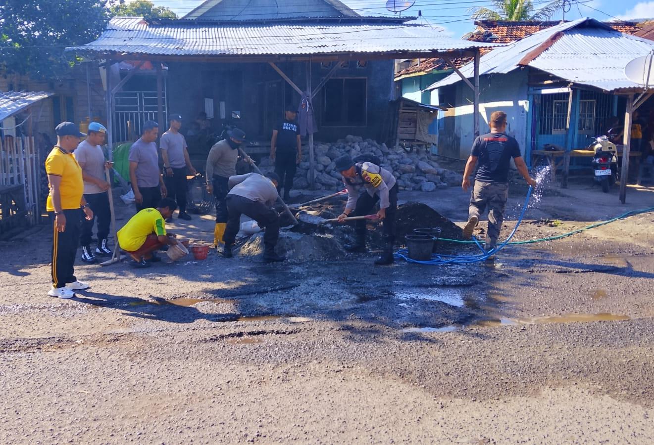 Dalam upaya menciptakan rasa aman dan nyaman bagi pengguna jalan, Polsek Hu’u Polres Dompu bersama masyarakat melaksanakan kegiatan kerja bakti perbaikan jalan rusak di wilayah Kecamatan Hu’u.