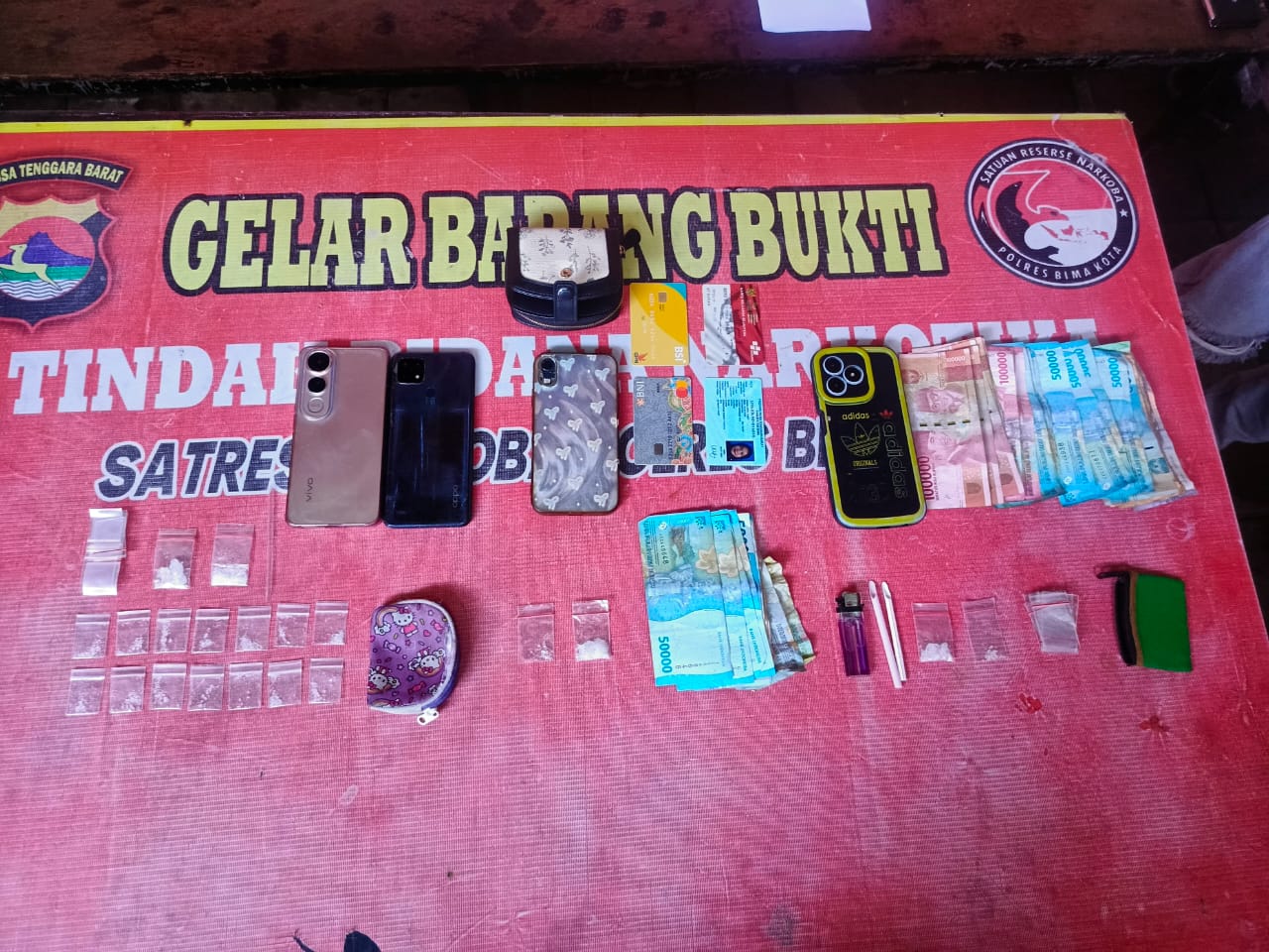 Secara keseluruhan, total barang bukti yang berhasil diamankan dari kasus ini mencapai 1,69 gram kristal narkotika jenis sabu, 4 unit handphone, serta berbagai peralatan yang diduga digunakan untuk penyalahgunaan dan peredaran narkotika.