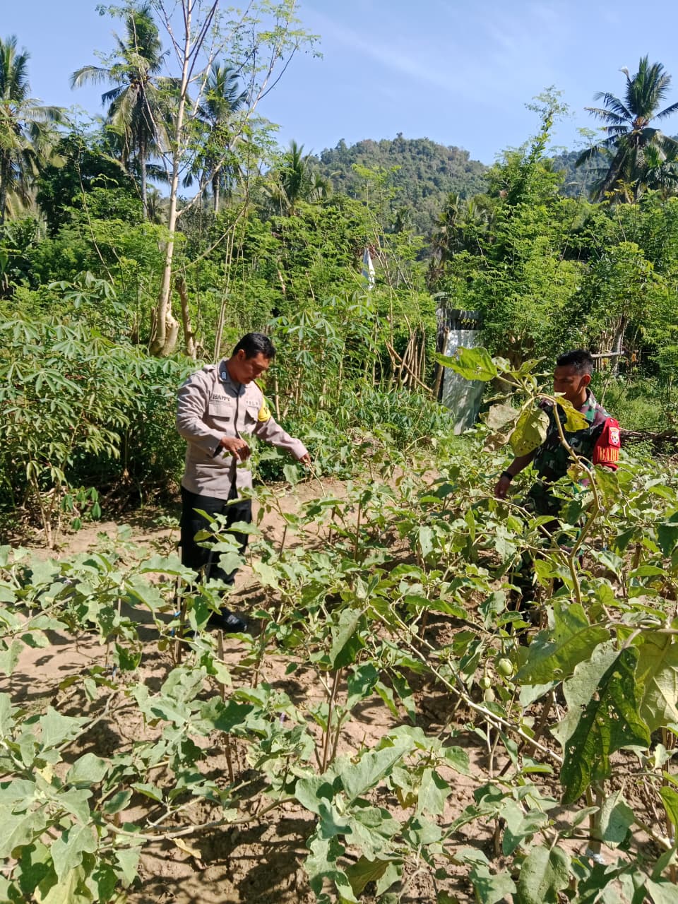 Bhabinkamtibmas secara langsung mengecek perkembangan tanaman dan memberikan motivasi kepada warga agar terus menjaga semangat dalam mengelola ketahanan pangan, terutama dalam menghadapi tantangan ekonomi dan perubahan iklim saat ini.