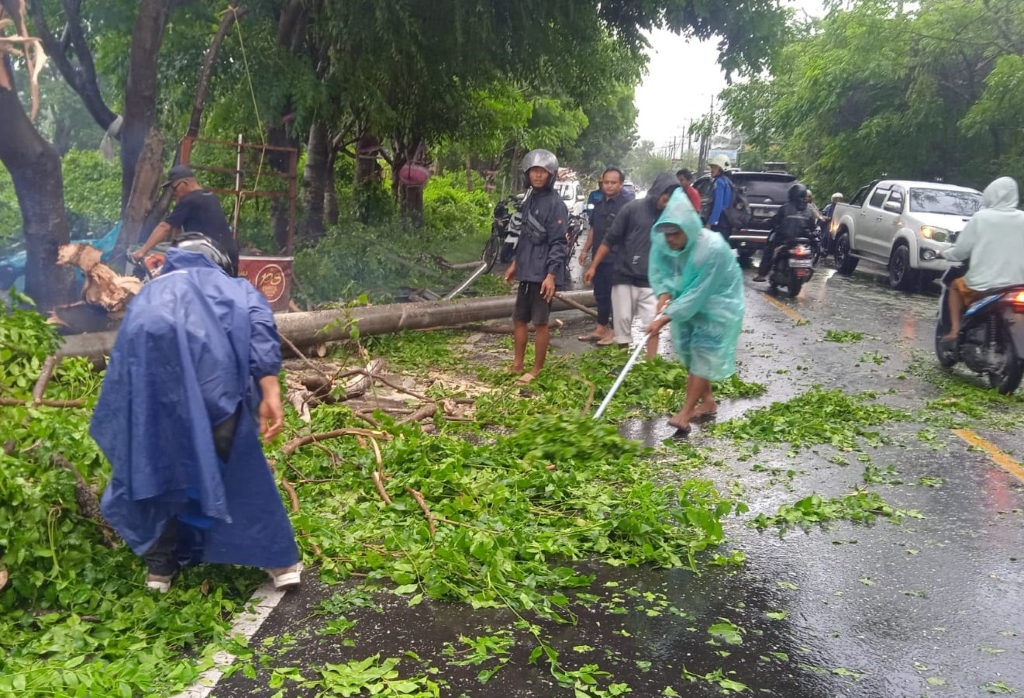 Sementara itu, di Jalan Sriwijaya, Kota Mataram, Babinsa Pagesangan Timur Serka Moh. Johan Erikson dari Koramil 1606-05/Mataram bersama warga membersihkan ranting dan dahan pohon besar yang menghalangi akses jalan di depan salah satu hotel. Kesigapan tersebut mendapat perhatian langsung dari Kepala Dinas Lingkungan Hidup Kota Mataram, H. Nizar Denny Cahyadi, S.E., yang turun langsung meninjau lokasi.