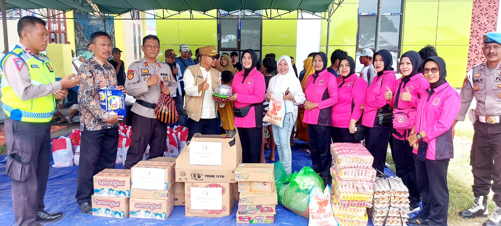 “Kehadiran kami bersama Bhayangkari hari ini adalah bentuk dukungan moral. Kami berharap bapak dan ibu tetap sabar serta ikhlas menghadapi cobaan ini,” ujar Kompol Satrio di hadapan warga.